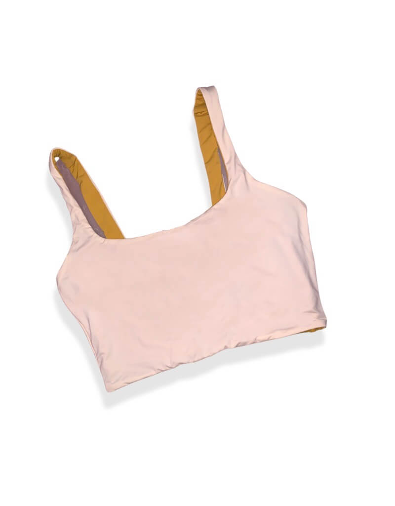 Featuring a beautiful pale yellow gold and a traditional off white, the Alai Original Reversible Swim Top is the perfect basic swim necessity for a relaxing day by the pool or a fun beach day. Wear it plain or dress it up by matching it with a swim top or bottom from the Amritham collection just in time for hot girl summer!